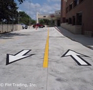 Thermoplastic pavement markings are a durable heated plastic material that lasts almost 4 times the life span of regular traffic paint. Thermoplastics are typically used in high traffic areas due to withstand the daily rigors of heavy vehicles.